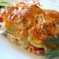 Восхитительная курица с грибами, запечённая под картофельной