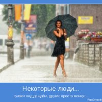 Некоторые люди гуляют под дождём, другие просто мокнут