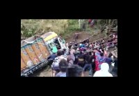 В Индии грузовик улетел в крутой овраг рядом с небольшой дере