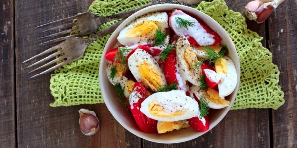 Название: Салат с помидорами, яйцами и йогуртовой заправкой