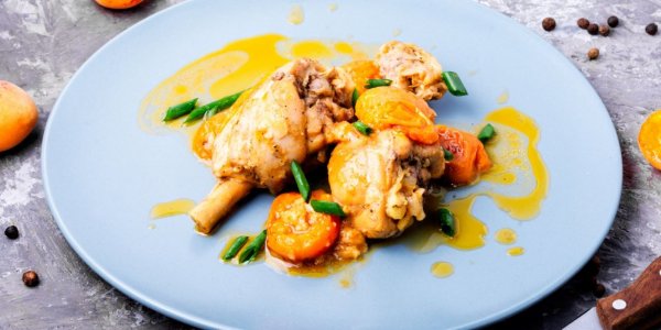 Описание: ✅ Курица с абрикосами и винным соусомКурица сперва запекается в духовке, а затем тушится с соусом из бульона, свежих фруктов, лука и белого вина.Для 4 порций нужно: ➦ Оливковое масло - 1 ст. ложка➦ Куриные бёдра или голени - 4 штуки➦ Соль - по вкусу➦ Свежие абрикосы - 10 штук➦ Лук-шалот - 2 штуки➦ Чеснок - 2 зубчика➦ Сухое белое вино - 2 ст. ложки➦ Кленовый сироп - 2 ст. ложки➦ Куриный бульон - 240 млМожно добавить:➦ Свежий розмарин - 3 веточкиГотовка: 1 ч.➤ Разогрейте духовку до 190 ℃.➤ В сковороде, пригодной для духовки, разогрейте 1 ложку масла на среднем огне. Приправьте курицу солью и обжарьте за 8 минут. ➤ Отправьте в духовку на 25 минут или до готовности. Затем перенесите курицу на тарелку, а масло и жир вылейте в миску.➤ Добавьте в сковороду 1 ложка жира из миски и разогрейте на среднем огне. Нарежьте абрикосы и обжаривайте 4–5 минут. Переложите к курице.➤ Разогрейте ещё 1 ложку жира. Обжаривайте рубленый лук 3 минут, закиньте измельчённый чеснок и готовьте 30 секунд.➤ Влейте вино. Соскребите со дна поджарившиеся кусочки. Доведите до кипения.➤ Добавьте сироп, бульон и розмарин. Вновь доведите до кипения и тушите, пока соуса не станет в два раза меньше.➤ Выложите туда курицу и абрикосы. Полейте соусом. Потушите ещё немного.