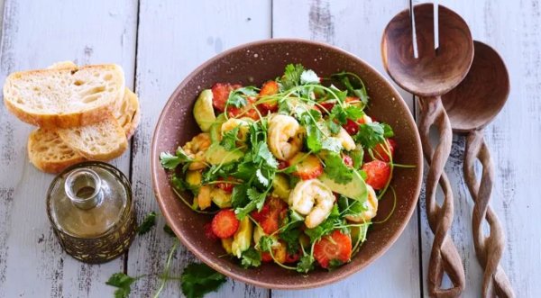 Описание: ✅ Салат с креветками, авокадо и клубникойЭтот ПП-салат — любопытная вариация на тему известной закуски из авокадо с креветками. К гармоничной паре добавилась сочная ароматная клубника, придающая блюду особое очарование.Для приготовления 4 порций нужно:➡️ крупные сырые креветки ➡ 300–400 г➡️ авокадо спелые ➡ 2 шт.➡️ клубника твердая несладкая, но ароматная ➡ 300 г➡️ лайм ➡ 1 шт.➡️ красный перец чили ➡ 1/2 шт.➡️ кинза ➡ 1 средний пучок ➡️ чеснок ➡ 1 зубчик➡️ оливковое масло ➡ 2 ст.л. + 3 ст.л.➡️ соль ➡ по вкусу➡️ свежемолотый черный перец ➡ по вкусуГотовка: 25 минут1. Чили нарежьте колечками, удаляя семена и перегородки. У кинзы снимите листья со стеблей. Листья отложите, стебли мелко порубите.2. У креветок надрежьте спинку по центру и удалите кишечную вену. Чеснок натрите на мелкой терке, смешайте со стеблями кинзы, солью, черным перцем и 2 ст. л. оливкового масла. Заправьте креветки, дайте им постоять 10 минут.3. Обжарьте креветки на сухой сковороде на среднем огне, по 2 минуты с каждой стороны. Переложите на тарелку.4. Снимите цедру с лайма и выжмите сок. Смешайте с 3 ст. л. оливкового масла, солью и перцем.5. Авокадо нарежьте крупными ломтиками, полейте половиной заправки. Клубнику нарежьте толстыми кружочками и полейте оставшейся заправкой.6. Смешайте все подготовленные ингредиенты, посыпьте листьями кинзы и подавайте.