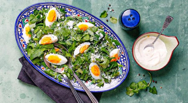 Описание: ✅ Салат «Далгу» со шпинатом и яйцомРецепт зеленого салата с яйцом пришел к нам из дагестанской (лакской) кухни. Традиционно его подают весной, добавляя всю доступную разнообразную зелень и зеленый лук. А если готовить салат со шпинатом, кинзой и мятой, то можно радовать себя полезным и вкусным блюдом в любое время года.Для приготовления 4 порций нужно:➡️ яйца ➡ 5 шт.➡️ шпинат ➡ 150 г➡️ йогурт нежирный ➡ 5 ст. л.➡️ зеленый лук ➡ 50 г➡️ мята свежая ➡ 5 веточек➡️ кинза свежая ➡ 5 веточек➡️ соль ➡ по вкусу➡️ свежемолотый черный перец ➡ по вкусуГотовка: 25 минут1. Сварите яйца вкрутую. 2 яйца разрежьте на четвертинки и оставьте для украшения салата. Остальные яйца разделите на желтки и белки. Белки нарежьте мелкими кубиками, желтки разомните вилкой, смешайте с йогуртом и белками, посолите, поперчите.2. Отделите от стеблей листья кинзы и мяты. Удалите жесткие стебли шпината. Мелко нарежьте всю зелень и сложите в миску.3. Яичную заправку добавьте в миску с зеленью и аккуратно перемешайте. Переложите салат на блюдо, украсьте четвертинками яиц, поперчите и сразу подавайте.