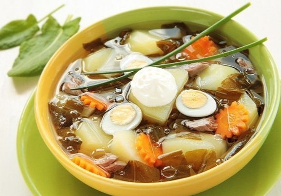 Щи щавелевые с перепилиными яйцами