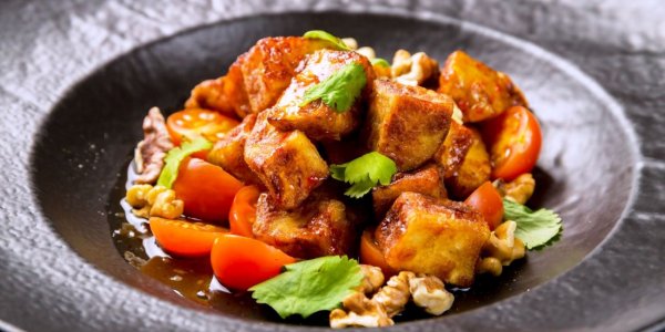 Описание: ✅ Хрустящие баклажаны - в кисло-сладком соусеБаклажаны выходят мягкими внутри, но снаружи они покрыты хрустящей корочкой. Сочные черри, ароматная зелень и орехи отлично дополняют их. Завершающий яркий штрих — кисло-сладкий соус с острыми нотками.Для приготовления 2 порций нужно:👉 Крупный баклажан - 1 штука👉 Соль - по вкусу👉 Помидоры черри - 150 г👉 Грецкие орехи - 40 г👉 Кинза или другая зелень - несколько веточек👉 Чеснок - 1 зубчик👉 Соевый соус - 3 ст. ложки👉 Сок лимона или лайма - 1 ст. ложка👉 Мёд - 1½ ст. ложки👉 Растительное масло - по вкусу👉 Кукурузный крахмал - 3 ст. ложкиМожно добавить:👉 Хлопья красного перца - по вкусуГотовка: 1 ч.➡️ Баклажан очистите и нарежьте не слишком крупными кусочками. Посыпьте солью, перемешайте и оставьте на 15 минут.➡️ Черри нарежьте половинками или четвертинками. Орехи измельчите ножом. Зелень нарубите. Чеснок пропустите через пресс.➡️ Для заправки смешайте соевый соус с чесноком, цитрусовым соком, мёдом и 2 столовыми ложками масла. Добавьте немного хлопьев красного перца, если хотите. Попробуйте соус и сбалансируйте на свой вкус, если нужно.➡️ Ополосните кусочки баклажана под прохладной водой и слегка подсушите бумажными полотенцами. Обваляйте в крахмале и стряхните излишки.➡️ В глубокой сковороде или сотейнике разогрейте масло на среднем огне. Партиями обжаривайте кусочки баклажана до румяности примерно по 3 минуты и выкладывайте на бумажные полотенца. ❗ НА ЗАМЕТКУ: Масла должно быть достаточно, чтобы обжарить баклажаны во фритюре.➡️ Смешайте горячие кусочки баклажана с черри и соусом. Добавьте зелень с орехами и сразу же подавайте к столу.