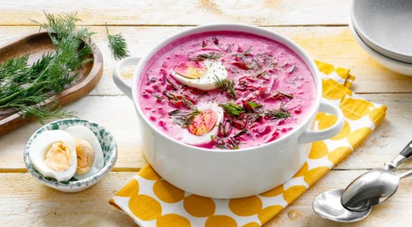 Описание: ✅ Холодник из свеклы - на кефиреОдно из лучших решений для обеда жарким летним днем: суп получается в меру сытным, но при этом освежающим. К тому же такое блюдо может стать прекрасной альтернативой классической окрошке, которая, при всем своем великолепии, может наскучить. Холодник еще и выглядит невероятно аппетитным: свекла в сочетании с кефиром придет блюду ярко-розовый цвет. Дополняет палитру сочный зеленый (от укропа с луком) и белый с желтым (яйцо). Красиво, эффектно и очень-очень вкусно!☛ Для приготовления 4 порций нужно:➤ свекла – 800 г➤ питьевая вода – 1 л➤ яблочный уксус – 1 ст. л.➤ картофель – 500 г➤ яйца – 4 шт.➤ свежие огурцы – 300 г➤ укроп – 2 веточки➤ зеленый лук – 60 г➤ кефир жирностью 1% – 1 л➤ свежемолотый черный перец – по вкусу➤ соль - по вкусу☛ Готовка: 1 ч👉 Подготовьте ингредиенты холодника. Свеклу очистите и вымойте. Разрежьте каждый корнеплод на четвертинки и сложите в кастрюлю. Залейте водой, добавьте яблочный уксус и поставьте на огонь.👉 Доведите до кипения. Уменьшите огонь и варите на слабом огне 45 минут. Пока готовится свекла, сварите картофель для холодника. Тщательно вымойте клубни, залейте горячей водой и варите 20 минут.👉 Сварите вкрутую яйца для холодника (10 минут). Охладите проточной водой. Свекле дайте полностью остыть в отваре, затем натрите ее на крупной терке или нарежьте очень тонкой соломкой.👉 Картофель очистите и нарежьте маленькими кубиками. Свежие огурцы вымойте и обсушите. Нарежьте маленькими кубиками. Укроп и зеленый лук для холодника промойте проточной водой и обсушите на бумажном полотенце. Мелко нарежьте.👉 Переложите укроп с зеленым луком в большую миску. Добавьте тертую свеклу, нарезанный картофель и свежие огурцы. Посолите, поперчите и перемешайте ингредиенты холодника.👉 Добавьте в миску кефир и перемешайте. Разлейте холодник по порционным тарелкам, в каждую влейте около 150 мл свекольного отвара. Яйца очистите и разрежьте на половинки. Распределите по тарелкам с холодником и подайте на стол.❗ НА ЗАМЕТКУ: Если вы хотите снизить калорийность холодника из свеклы на кефире, откажитесь от картофеля. Желаете наоборот «уплотнить» блюдо? Добавьте в холодник нарезанную вареную колбасу или курицу.❗ КСТАТИ: Холодник на кефире получится еще более вкусным, если суп готовить из молодой свеклы с ботвой. Только обязательно тщательно промойте ее, чтобы в блюдо не попали земля с песком.