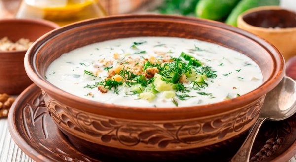 Описание: ✅ Таратор - болгарский кисломолочный супХолодный освежающий суп, популярный жарким летом в Болгарии и других странах балканского региона. Его рецепт напоминает окрошку, но отличается от неё меньшим количеством ингредиентов и, разумеется, другим вкусом. Окрошку любят далеко не все за её странный вкус, а вот таратор придётся по вкусу всем кто хотел бы поесть в жару что-нибудь лёгкое и холодное.☛ Для приготовления 4 порций нужно:✔ грецкие орехи очищенные – 0,5 стакана✔ 6–8 веточек укропа✔ йогурт натуральный – 500 мл✔ масло подсолнечное – 100 мл✔ соль – по вкусу✔ зубчики чеснока – 4 шт.✔ огурец свежий – 4 шт.☛ Готовка: 15 мин👉 Огурцы вымыть, обсушить, отрезать кончики. Нарезать тонкой соломкой и присыпать солью, чтобы они дали сок.👉 Чеснок очистить и растереть в ступке вместе с половиной грецких орехов в однородную массу. Йогурт перелить в миску и взбивать венчиком или миксером 4 мин. Положить чеснок с орехами в миску с йогуртом. Влить подсолнечное масло и взбить. Оставшиеся орехи порубить ножом в мелкую крошку. Добавить в суп огурцы вместе с выделившимся соком, орехи, мелко нарезанный укроп, посолить и перемешать. ❗ ПОЛЕЗНЫЙ СОВЕТ: Если суп получился очень густым, его можно разбавить холодной кипяченой водой. А в Болгарии к таратору отдельно подают миску с мелко колотым льдом.