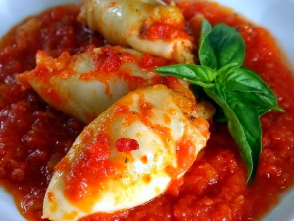 Фаршированные кальмары в томатном соусе