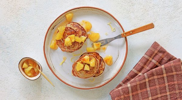 Описание: Банановые оладьи - без муки и сахара понравятся всем любителям сладкого, которые хотят питаться вкусно, но при этом сохранять стройность. Рецепт прост и включает в себя минимальное количество ингредиентов. Основа этих оладий – бананы, а они, как известно, улучшают эмоциональное состояние человека и положительно влияют на ЖКТ. Этот фрукт быстро насыщает и восполняет энергию, поэтому особенно полезен спортсменам и людям чья деятельность связана с физическими нагрузками. Второй ингредиент – яйца. Они тоже надолго утоляют голод и благотворно влияют на работу нервной системы. Сочетание этих двух продуктов поможет сохранить прекрасное настроение и самочувствие.Для приготовления 2 порций нужно:➦ бананы – 2 шт. (250 г)➦ яйца – 2 шт.➦ лимонный сок – 1 ст.л➦ растительное масло – 2 ст.лГотовка: 40 мин➡️ - Подготовьте продукты. Яйца нужно заранее достать из холодильника, чтобы они были комнатной температуры. Бананы должны быть очень зрелые для максимальной сладости и лёгкости измельчения.➡️ - Банан очистите от кожуры и нарежьте небольшими дольками. Или тщательно разомните вилкой. Отожмите одну столовую ложку лимонного сока. Разбейте яйца, смешайте их с бананами и соком.➡️ - Поместите полученную смесь в блендер. Взбивайте на высокой скорости 4-5 минут. Должна получиться пышная однородная пена. А объём первоначальной массы - увеличиться вдвое.➡️ - Разогрейте сковороду на среднем огне и смажьте тонким слоем растительного масла. Выложите банановую массу, сформировав оладьи нужного размера. Накройте крышкой и оставьте на 2-3 минуты.➡️ - Когда поверхность оладий станет матовой, выложите на неё второй слой банановой массы. Снова накройте крышкой и продолжайте готовить на среднем огне 1-2 минуты.➡️ - Выложите третий слой банановой массы. Накройте крышкой и готовьте ещё 1-2 минуты, пока финальный слой теста не станет матовым. Благодаря многослойности, оладьи получатся объёмными и воздушными.➡️ - Переверните оладьи, накройте сковороду крышкой. Готовьте 2-3 минуты до образования золотистой корочки. Переворачивать нужно аккуратно, так как оладьи очень нежные и могут легко порваться.➡️ - Повторите весь процесс с оставшейся банановой массой. Выложите готовые оладьи на тарелку и по желанию украсьте любимыми фруктами. Подавайте к столу тёплыми или остывшими.❗ НА ЗАМЕТКУ: Если в вашем доме есть недозрелые фрукты, можно положить их к бананам. С помощью этого приёма и бананы будут медленнее портиться, и фрукты быстрее станут спелыми.❗ КСТАТИ: О бананах в России узнали в начале XVIII века. После путешествия Петра I в Голландию. Долгое время бананы были доступны только для высшего класса. В продаже этот фрукт появился в СССР при Хрущёве, который смог наладить массовый импорт бананов из Китая.