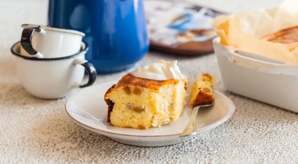 Описание: Классическую творожную запеканку с изюмом многие любят еще с детского садика (что ни говори, некоторые блюда там готовили славно), но вот повторить ее дома как-то не решаются. Вернее, некоторые пробовали это делать, но попытки заканчивались крахом: то ли подводил рецепт, то ли продукты, то ли кулинарная сноровка. Из разных вариантов приготовления творожных запеканок - этот наиболее достойный и «рабочий». Блюдо получается действительно вкусным, а его консистенция — в меру нежной, но не жидкой.✍️ Для приготовления 10 порций нужно:➽ творог – 1 кг➽ яйца – 5 шт➽ сахар – 1 стакан➽ мука – 5 ст. л.➽ цедра 1 лимона➽ разрыхлитель – 0,5 ч. л.➽ сметана – 200 г➽ изюм крупный без косточек – 100 г✍️ Готовка: 1 ч🔷 - Творог для классической запеканки протереть через мелкое сито. Затем добавить сметану, яйца и сахар, взбить венчиком. Добавить просеянную с разрыхлителем муку. Еще раз взбить.🔷 - Лимон вымыть и обсушить. Затем снять с плода мелкой теркой цедру. Изюм промыть теплой водой. Добавить в творожную массу лимонную цедру и изюм, хорошо перемешать.🔷 - Форму для выпекания застелить пергаментом, выложить получившуюся массу, разровнять поверхность. Готовить запеканку в заранее разогретой до 180 °С духовке 35 мин.❗ ПОЛЕЗНЫЙ СОВЕТ - Вместо изюма для творожной запеканки можно использовать другие сухофрукты, например, вяленую клюкву или нарезанную небольшими кубиками курагу. В последнем случае цвет блюда станет нежно-золотистым.❗ КСТАТИ - В состав этой классической творожной запеканки с изюмом включили сметану и немного разрыхлителя: такая «добавка» сделала текстуру блюда более упругой и пышной одновременно.