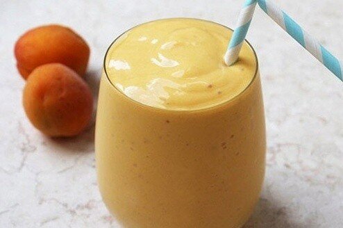 Описание: Абрикосово-банановый смузи.*Ингредиенты : Абрикосы — 12 штук Банан — 1 штука Рисовое ванильное молоко — 250 миллилитров Натуральный йогурт — 125 миллилитров *ПРИГОТОВЛЕНИЕ :У абрикосов удалите косточку и пробейте вместе с бананом и рисовым молоком (можно заменить на обычное), йогуртом и бананом в блендере на максимальной скорости около пяти минут. *Подавайте, украсив молодыми листьями мяты и кусочком абрикоса. *Для этого смузи нужны уже мягкие абрикосы, которые слегка перележали на полке холодильника, есть их уже, вроде, не хочется, а для смузи они подходят идеально. Натуральный йогурт в данном рецепте нужен для того, чтобы вкус был сбалансированным, иначе получается очень сладко.*Приятного аппетита!