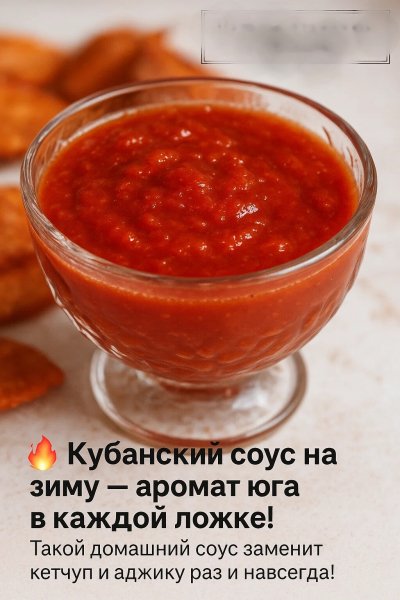 Описание: Кубанский соус на зиму.*Такой домашний соус заменит кетчуп и аджику раз и навсегда! Ароматный, густой, с пикантной ноткой — он идеально подходит к мясу, рыбе, макаронам или просто на хлеб! 🍞🍅*Ингредиенты :Красный сладкий перец — 5 кгМясистые помидоры — 2,5 кгЧеснок — 300 гПетрушка — 100 гПодсолнечное масло — 300 млСахар — 200 гСоль — 100 гУксус 9% — 100 млКрасный острый перец — 3–5 шт (по вкусу)*ПРИГОТОВЛЕНИЕ :Перец промой, удали семена и хвостики. Помидоры — на дольки, чеснок — почистить.Пропусти перец, томаты и чеснок через мясорубку или блендер.Зелень мелко нарежь и добавь в общую массу.Переложи всё в широкую кастрюлю, влей масло, всыпь сахар и соль.Доведи до кипения и вари 10–12 минут, периодически помешивая.За 2 минуты до конца — добавь уксус. Готово!*Разлей в стерильные банки и закатай. Можно хранить при комнатной температуре.*💡 Советы от кубанских хозяек :Чем краснее перец, тем ярче вкус!Острый перец регулируй по вкусу — от лёгкой пикантности до «огонь».Этот соус можно измельчить в пюре — будет идеально гладкий, как кетчуп.*С чем подавать :к шашлыкук пельменямна бутербродыв борщ и соусы — для насыщенности*📦 Выход: около 6–6,5 литров вкусноты.*Приятного аппетита!