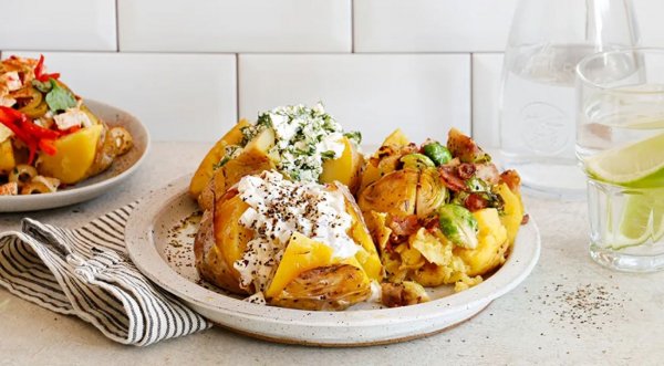 Описание: Как и многие блюда в духовке, готовится печеная картошка просто, а любят ее все от мала до велика. Пока картофель будет запекаться, приготовьте к нему начинки (с ними придется немного постараться). Печеная картошка с начинкой в любом варианте из представленных получится необычайно ароматной, вкусной и питательной. Ещё вам потребуется фольга для запекания. В ней же при желании можно потом подать блюдо - очень удобно!✍️ Для приготовления 8 порций нужно:🔸 картофель - 8 средних🔸 сливочное масло - по вкусу🔸 оливковое масло «экстра вирджин» - по вкусу🔸 соль - по вкусу✍️ Для начинки из капусты:🔸 брюссельская капуста - 4 кочанчика🔸 бекон - 50 г🔸 сыр пармезан - 20 г✍️ Для начинки из курицы:🔸 филе куриной грудки - 100 г🔸 сладкий красный перец - 1 маленький🔸 оливок без косточек - 1–2 ст. л.🔸 шпинат - половина маленького пучка🔸 оливковое масло «экстра вирджин» - по вкусу🔸 лимонный сок - по вкусу🔸 соль - по вкусу✍️ Для начинки из сельди:🔸 сельдь (филе) - 0,5 шт.🔸 зеленое яблоко - 1 маленькое🔸 красная луковица - 0,5 шт.🔸 сметана - 2 ст. л.✍️ Для сырной начинки:🔸 брынза - 100 г🔸 свежий огурец - 0,5 шт.🔸 укроп - 0,5 пучка🔸 соль - по вкусу✍️ Готовка: 1 ч 10 мин💠 - Помойте картофель щеткой, обсушите. Натрите каждую картофелину оливковым маслом, посыпьте солью, заверните в фольгу. Поместите картофель на противень и запекайте в разогретой до 180 °С духовке 40–60 мин. Чтобы проверить степень готовности, слегка сожмите картофелину – она должна быть мягкой.💠 - Пока запекается картофель, приготовьте начинки. Для сырной натрите на крупной терке огурец, посолите его и отожмите сок. Мелко нарежьте укроп. Разомните вилкой брынзу. Смешайте брынзу, укроп и огурец.💠 - Для начинки из капусты с беконом капусту разрежьте на 4 части, бекон нарежьте кубиками. На сковороде на среднем огне обжаривайте бекон, пока из него не вытопится немного жира. Положите капусту, обжаривайте, пока она не станет мягкой, примерно 10 мин. Посыпьте готовую капусту тертым пармезаном.💠 - Для начинки из сельди с яблоками очень мелко нарежьте сельдь, лук и яблоко, добавьте сметану, перемешайте.💠 - Для начинки из курицы отварите куриное филе на пару или запеките в духовке до готовности, нарежьте кубиками. Сладкий перец очистите, нарежьте тонкими полосками и обжарьте на разогретой с маслом сковороде, 5 мин. Шпинат мелко нарвите руками, оливки порубите. Смешайте курицу, перец, оливки и шпинат. Заправьте лимонным соком и оливковым маслом по желанию.💠 - Сделайте глубокий крестообразный надрез. Раскройте наподобие цветка и слегка разрыхлите мякоть вилкой, отделяя ее от кожуры. Положите кусочек сливочного масла, при желании посолите и положите в каждую картофелину начинку – получится по 2 картофелины с каждой начинкой.