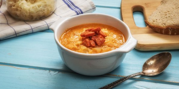Описание: 🔷 Зелначка - чешский суп из квашеной капустыНаваристое и согревающее кисло-сладкое блюдо с поджаренной копчёной колбасой и ароматными специями традиционно готовят в холодных горных регионах страны.✍️ Для приготовления 4 порций нужно:🔸 Лук – 3 штуки🔸 Квашеная капуста – 500 г🔸 Растительное масло или смалец – 3 ст. ложки🔸 Молотый тмин – ½ ч. ложки🔸 Паприка – 1 ст. ложка🔸 Мука – 6 ст. ложек🔸 Куриный бульон или вода – 1 200 мл🔸 Лавровые листья – 2 штуки🔸 Картофель – 3 штуки🔸 Копчёная колбаса – 200 г🔸 Сахар – 4 ст. ложки🔸 Соль – по вкусу🔸 Молотый чёрный перец – по вкусу✍️ Готовка: 40 мин.❇️ - Лук очистите и нарежьте кубиками. Квашеную капусту промойте, отожмите и некрупно нарежьте.❇️ - В большой кастрюле разогрейте 2 столовые ложки растительного масла, обжарьте лук до золотистого цвета за 3–4 минуты.❇️ - Всыпьте в кастрюлю тмин, паприку и муку, перемешайте и готовьте 1 минуту.❇️ - Влейте в кастрюлю 200–300 мл бульона, тщательно перемешайте, чтобы в смеси не было комков, и влейте оставшийся бульон.❇️ - Добавьте в бульон квашеную капусту и лавровый лист, варите суп на небольшом огне 20 минут.❇️ - Картофель очистите, нарежьте крупными кубиками и отварите в кипящей воде до мягкости за 6–7 минут.❇️ - Колбасу нарежьте кубиками и обжарьте на оставшемся масле до золотистой корочки.❇️ - Всыпьте в кастрюлю картофель и колбасу, удалите лавровый лист, добавьте сахар, соль и перец по вкусу, перемешайте и снимите суп с огня.