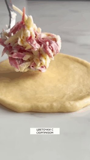 Описание: Булочки «Цветочки с сюрпризом».*Начинка может быть разной, а форма — просто загляденье.*Что понадобится (на 12 шт):Стакан — 200 мл*Ингредиенты :Для теста :- Мука — 4 стакана (примерно 500 г)- Тёплое молоко — 230 мл (1 стакан + 3 ст.л.)- Яйца — 2 шт. (белок от одного оставить для смазывания)- Сахар — 1 ст.л.- Соль — 1 ч.л. с горкой- Сливочное масло — 60 г (размягчённое)- Сухие дрожжи — 4 ч.л.*Для начинки :- Ветчина или копчёная говядина — 100 г- Сыр (любой тёртый, хорошо плавящийся) — 250 г- Майонез — 4 ст.л.- Крем-сыр — для прослойки между лепестками*Для обсыпки :- Белок 1 яйца + немного воды- Кунжут (лучше обжаренный)*ПРИГОТОВЛЕНИЕ :1. В миску высыпаю муку, делаю в центре углубление. Добавляю дрожжи и тёплое молоко — даю постоять 5 минут.*2. Добавляю яйца (один белок оставляю), сахар, соль и начинаю вымешивать.*3. Когда тесто соберётся — добавляю мягкое сливочное масло и продолжаю вымешивать, пока не станет мягким и эластичным.*4. Делим тесто на 12 частей, скатываем в шарики. Накрываю полотенцем, оставляю на 10 минут.*5. Каждый шарик раскатываю в лепёшку, кладу начинку (ветчина, сыр, майонез), защипываю и немного прижимаю.*6. Оставляю ещё на 20–25 минут — пусть булочки подойдут.*7. Затем придаю форму цветка: делаю надрезы или аккуратно выкладываю лепестками. Между ними — по капле крем-сыра.8. Смазываю смесью белка и воды, обваливаю верх в кунжуте.9. Выпекаю при 190°C в духовке с конвекцией до румяной корочки — это 20–25 минут.*Советы :- Не бойтесь экспериментировать с начинкой — подойдёт и курица, и грибы, и шпинат с творогом.- Если мука «жадная» — добавьте 1–2 ст.л. молока.- Хотите супер-мягкие булочки — остудите их под полотенцем.- Эти булочки удобно брать с собой или подавать к первым блюдам.*Приятного аппетита!