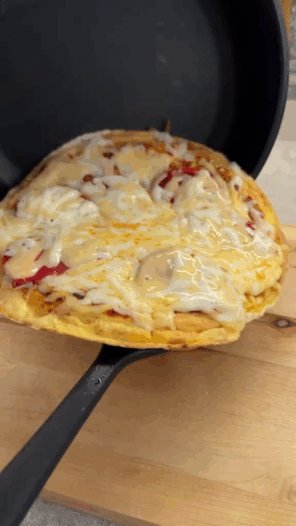 Идея для завтрака.*Ингредиенты :- яйца,- пшеничная тортилья (лаваш),- грибы шампиньоны,- помидор,- сыр,- томатный соус.*Приятного аппетита!