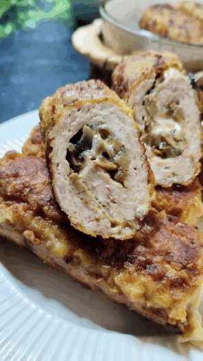 Описание: Рулетики из фарша с грибами и сыром.*Ингредиенты :- Фарш (свиной) — 500 г- Сыр (твердый) —100- 150 г- Панировочные сухари — 70-100 г- Чеснок — 2-3 зубчика- Специи (по вкусу) — черный перец, паприка, прованские травы- Соль — по вкусу- Грибы (шампиньоны или другие) — 300 г- Лук — 1 шт.- Мука — для обсыпки- Яйцо — 2 шт.*ПРИГОТОВЛЕНИЕ :- Обжарьте мелко нарезанные грибы с луком на сковороде до золотистого цвета. Отложите в сторону.- В глубокой миске смешайте фарш, натертый сыр, панировочные сухари, измельченный чеснок, специи и соль. Хорошо перемешайте до однородной массы.- На пергаментной бумаге распредели фарш ,накройте листом пергамента и раскатайте его в тонкий пласт. Снимите пергамент.- Равномерно распределите обжаренные грибы с луком по поверхности фарша. Посыпьте натертым сыром.- Разрежьте фарш с начинкой на квадраты и каждый квадрат аккуратно скрутите в рулетик.- Обваляйте каждый рулетик сначала в муке, затем в взбитом яйце, и снова в муке.- Обжарьте рулетики на сковороде с разогретым маслом до золотистой корочки с обеих сторон.- Подавайте горячими с любимым соусом или гарниром.*Приятного аппетита!