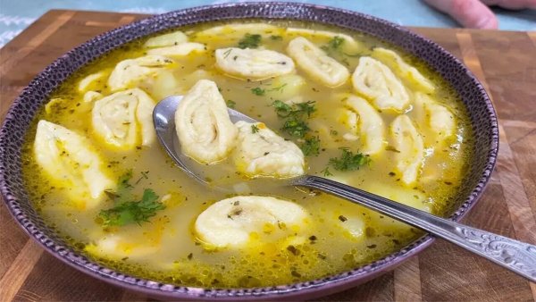 Описание: Суп с чесночными галушками. *Ингредиенты :Сварить готовый куриный бульон - 3 л.*Для зажарки :- Морковь - 1 шт.- Лук - 1 шт.- Жарить на растительном и сливочном масле - 1:1 - Картофель - 6 шт.- Соль, сахар и специи - по вкусу.*Тесто для галушек :- Яйца - 2 шт.- Мука - 120 г.- Соль-щепотка.- Растительное масло - 1 ст.л.- Вода - 1 ст.л.*Начинка для галушек :- Чеснок - 3 зубчика.- Растительное масло - 30 мл.- Итальянские специи- Соль-щепотка- Укроп и петрушка - для подачи*ПРИГОТОВЛЕНИЕ :1. Сварите наваристый бульон. В кастрюлю положите куриные ножки, добавьте лавровый лист, перец горошком, очищенный лук и чеснок. Варите на среднем огне 1,5 часа. В конце процедите бульон, а мясо отделите от костей. *2. Нарежьте картофель крупными кубиками. Добавьте его в кипящий бульон и варите на среднем огне 10–15 минут. *3. На сковороде разогрейте сливочное и растительное масло. Обжарьте лук, нарезанный кубиками, и натёртую морковь до мягкости. Добавьте щепотку соли и перца. *4. В миске взбейте яйца с растительным маслом, водой и щепоткой соли. Постепенно добавляйте муку, замешивая мягкое тесто. Оно должно быть эластичным, но не липким. Заверните тесто в пищевую плёнку и оставьте на 10 минут. *5. Пропустите чеснок через пресс. Смешайте его с итальянскими травами, солью, перцем и растительным маслом. *6. Раскатайте тесто в тонкий пласт (около 2–3 мм). Равномерно распределите чесночную начинку, не доходя до краёв. Сверните тесто в рулет и хорошо защипните край. Нарежьте рулет на кусочки толщиной 1 см. *7. В готовый бульон добавьте зажарку и варёное мясо. Посолите, добавьте итальянские травы и чёрный перец. Когда суп закипит, по одному опустите галушки в кипящий бульон, чтобы они не слиплись. Варите суп ещё 7–10 минут на среднем огне. *8. В готовый суп добавьте мелко нарезанную зелень. Дайте супу настояться 5 минут и подавайте горячим. *Приятного аппетита!