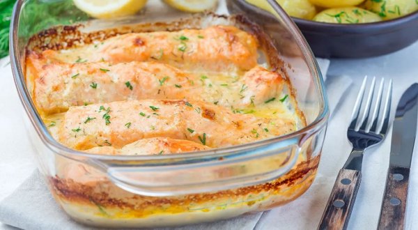 Описание: 🔶 Форель со сливкамиСливочные соусы прекрасно сочетается со всеми представителями дружного семейства лососевых. Идеальный тандем с форелью, как и с любой другой не слишком жирной рыбой. ✍️ Для приготовления 4 порций нужно:🔹 форель (филе) – 4 шт. по 200-250 г🔹 масло сливочное – 50 г🔹 сливки 22% – 200 мл🔹 чеснок – 3 зубчика🔹 горчица дижонская – 2 ч. л.🔹 лимон – 1 шт.🔹 перец черный молотый – по вкусу🔹 укроп – 10 г🔹 соль – по вкусу✍️ Готовка: 30 минут🟠 – Проверьте филе на отсутствие костей. Промокните филе бумажными полотенцами и уложите кожей вниз в форму для запекания. Приправьте рыбу свежемолотым черным перцем и солью по вкусу.🟠 – Разрежьте лимон пополам вдоль, одну половинку отложите для подачи, а вторую разрежьте на две дольки и выжмите из них сок прямо на рыбу так, чтобы он равномерно распределился. Дайте рыбе постоять минут 10.🟠 – Положите в небольшую стеклянную или керамическую миску, подходящую для СВЧ-печи, сливочное масло и растопите его в микроволновке в течение 20 секунд. Выньте.🟠 – Очистите зубчики чеснока и пропустите их через пресс в миску с растопленным сливочным маслом. Добавьте дижонскую горчицу, влейте сливки и перемешайте соус до однородного состояния.🟠 – Залейте сливочным соусом куски филе форели в форме. Поставьте форму в разогретую до 200 °С духовку и запекайте 20–25 минут. 🟠 – Пока готовится рыба, мелко порубите зелень укропа. Выньте форель в сливочном соусе из духовки, посыпьте свежим укропом и дайте постоять пару минут. ☝️ ПОЛЕЗНЫЙ СОВЕТ – По желанию при подаче вы можете дополнить рыбу в сливочном соусе дольками грейпфрута — они придадут вкусу готового блюда нежный цитрусовый акцент с приятной горчинкой. Только предварительно аккуратно очистите каждую дольку от мягких белых прослоек и оболочки, стараясь не нарушать целостность соковых мешочков.