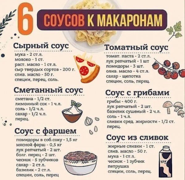 6 соусов к макаронам