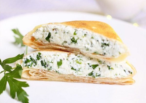 Описание: Блинчики с творогом и укропом.*Ингредиенты:- Блины 6 шт- Творог от 9% 300 грамм- Укроп свежий 0,5 пучка- Желток сырой 2 шт- Смесь перцев 1 щепотка- Масло сливочное 30 грамм- Соль поваренная щепотка*ПРИГОТОВЛЕНИЕ :Подготовьте шесть блинчиков, воспользовавшись любым рецептом тонких блинов на этом сайте.*Творог, лучше домашний, разомните вилкой, чтобы разбить большие комочки.*Из жирного творога начинка получается более нежной и сочной, чем из обезжиренного и сухого.*В творог добавьте желтки, щепотку соли и смесь перцев, снова разомните вилкой.*К творогу добавьте мелко нарубленный свежий укроп. Крупные веточки не используйте, они могут быть жёсткие.*Выложите начинку на середину блинчика и заверните квадратом.*Разогрейте на сковороде сливочное масло и обжарьте в нём блинчики с двух сторон до румяной корочки.*Приятного аппетита!