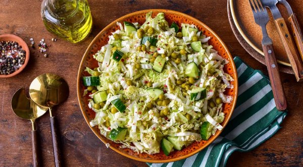 Название: Салат с капустой, огурцом и зеленым горошком