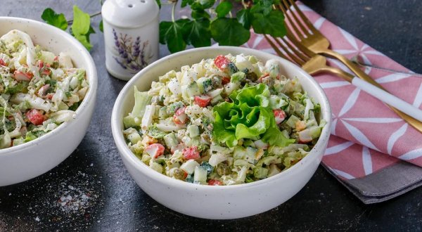 Описание: ✅ Салат с крабовыми палочками и горошкомСалат с крабовыми палочками и горошком — это блюдо из доступных ингредиентов, которые всегда могут быть под рукой. Удобно держать в морозилке пачку крабовых палочек, а в кладовке — баночку консервированного горошка, тогда в любой момент можно побаловать себя и домочадцев. Этот салат — настоящая палочка-выручалочка и удобный конструктор. В нем достаточно заменить всего один (тот или иной) ингредиент, и вы удивите окружающих новым прочтением привычного блюда. Так вместо горошка можно использовать кукурузу, а пекинскую капусту заменить молодой белокочанной. Такой салатик можно и на праздничный стол поставить, и разнообразить ежедневное меню. ✏️ Для приготовления 1 порции нужно:🔺 Крабовые палочки – 200 г🔺 Огурец – 200 г🔺 Капуста пекинская – 150 г🔺 Горошек зелёный консервированный – 150 г🔺 Салат – 150 г🔺 Яйцо куриное – 3 шт.🔺 Сметана 12% – 100 г🔺 Горчица зернистая – 20 г🔺 Соль – 1/3 ч.л.🔺 Перец чёрный молотый – 1/3 ч.л.✏️ Готовка: 15 мин🟩 Яйца положите в сотейник с холодной водой, добавьте ложку соли и доведите до кипения. Варите с момента закипания 4 минуты, уберите с огня, слейте горячую воду, добавьте холодную и оставьте на 5 минут. Очистите яйца от скорлупы и нарежьте средними кубиками, положите в глубокую миску.🟩 Огурцы нарежьте кубиками со стороной 5 мм. Если в них много крупных семян, то серединку лучше удалить. Крабовые палочки достаньте из упаковки и нарежьте средними кубиками. Отправьте их в миску к яйцам и огурцам.🟩 Пекинскую капусту разберите на листики, промойте и обсушите, разрежьте вдоль пополам, затем нашинкуйте тонкой стружкой. Она придаст воздушность и объем салату. 🟩 С зеленого горошка слейте лишнюю жидкость, переложите его в большую миску к другим ингредиентам. Тщательно перемешайте снизу вверх, чтобы все хорошо соединилось.🟩 Приготовьте заправку. Соедините сметану, горчицу с зернами, черный молотый перец и соль. Отправьте в миску к салату. Можно использовать просто майонез.☝️ КСТАТИ – Крабовые палочки — это лишь имитация крабового мяса. Они создаются из измельченного мяса белой рыбы или обработанного рыбного белка сурими. Цвет и форма, привычные нашему глазу и вкус (мягкий, рыбный, слегка сладковатый), ароматизаторы и красители. Именно этот продукт является основным и незаменимым ингредиентом салата с крабовыми палочками и горошком.☝️ НА ЗАМЕТКУ – Вместо консервированного зеленого горошка для приготовления салата с крабовыми палочками можно использовать замороженный. Его надо сразу из морозилки отправить в кипящую воду. Когда жидкость снова закипит, проварить одну минуту. Затем слить воду и положить в миску с холодной водой. Через пару минут откинуть горох на дуршлаг. Все готово.