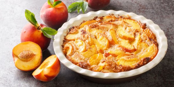 Описание: 🔴 🔴 🔴 Немецкий пирог - с персиками 🔴 🔴 🔴Мягкое тесто, сочные фрукты и запечённый заварной крем создают идеальный десерт. Зимой свежие персики можно смело заменять консервированными.✅ Для приготовления 8 порций нужно:❎ Для теста:🔸 Мука – 190 г🔸 Сахар – 150 г🔸 Разрыхлитель – 2 ч. ложки🔸 Соль – ½ ч. ложки🔸 Молотый мускатный орех – ⅛ ч. ложки🔸 Сливочное масло – 60 г + для смазывания🔸 Молоко – 120 мл🔸 Яйцо – 1 штука🔸 Персики – 3 штуки❎ Для заварного крема:🔸 Сливки жирностью 33 % – 240 мл🔸 Мука – 2 ч. ложки🔸 Сахар – 100 г🔸 Яйцо – 1 штука🔸 Ванильный экстракт – 1 ч. ложка🔸 Соль – 1 щепотка✅ Готовка: 1 ч. 20 мин.➡️ – Разогрейте духовку до 200 ℃. Смажьте маслом форму диаметром 22–23 см.➡️ – Венчиком смешайте муку, сахар, разрыхлитель, соль и мускатный орех.➡️ – Добавьте кусочки холодного масла и перетрите всё в крошку.➡️ – Соедините молоко и яйцо. Влейте к муке и перемешайте вилкой. Выложите в форму.➡️ – Персики нарежьте дольками. Распределите по тесту. Выпекайте 15 минут. ➡️ – Смешайте 60 мл сливок и муку. Введите остальные ингредиенты для крема.➡️ – Выньте пирог, залейте подготовленной массой. ➡️ – Верните пирог в духовку и сразу же снизьте температуру до 180 ℃. Готовьте ещё 35–40 минут.☝️ – Пирог готов, если верхушка немного вздулась, а края сильно подрумянились и стали отходить от стенок формы.