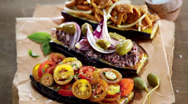 Описание: 🟪 Баклажаны на гриле - с тремя начинками 🟪Баклажаны на сковороде-гриль в средиземноморском стиле отлично подходят к бокалу ледяного белого вина. Подавайте их в качестве легкой закуски перед основным приемом пищи. Вариантов начинки огромное количество: белые грибы, сыр, соус песто, овощная сальса и др.✅ Для 2 порций нужно:🔸 баклажаны, нарезанные ломтиками – 2 шт.❇️ Для начинки №1:🔸 лисички – 150 г🔸 белый лук, нарезанный перьями – 1/2 шт.🔸 сливочное масло – по вкусу🔸 оливковое масло – по вкусу🔸 соль – по вкусу🔸 свежемолотый черный перец – по вкусу❇️ Для начинки №2:🔸 маслины – 100 г🔸 красный лук, нарезанный перьями – 1/2 шт.🔸 крупно нарезанные оливки – 50 г🔸 крупные каперсы – 20 г🔸 лимонный сок – 1 ст. л.🔸 чеснок – 1 зубчик🔸 оливковое масло – по вкусу❇️ Для начинки №3:🔸 разноцветные помидоры черри – 250 г🔸 крупные каперсы – 30 г🔸 листочки базилика – 1 горсть🔸 оливковое масло – по вкусу🔸 соль – по вкусу🔸 свежемолотый черный перец – по вкусу✅ Готовка: 30 минут▶️ – Баклажаны посолите и оставьте на 10 минут. Затем обжарьте на сковороде-гриль с небольшим количеством растительного масла.▶️ – Для начинки №1 бланшируйте 150 г лисичек, обсушите, затем обжарьте в смеси оливкового и сливочного масла. Добавьте белый лук, соль и перец.▶️ – Для начинки №2 измельчите в блендере маслины и каперсы. Добавьте лимонный сок, чеснок и немного оливкового масла. Смешайте с красным луком и нарезанными оливками.▶️ – Для начинки №3 нарежьте кружочками помидоры черри. Каперсы разрежьте на 2–3 части. Смешайте черри и каперсы с измельченным базиликом, оливковым маслом, солью и перцем.▶️ – Разложите начинки на ломтиках баклажанов, сбрызните оливковым маслом, подавайте на стол.