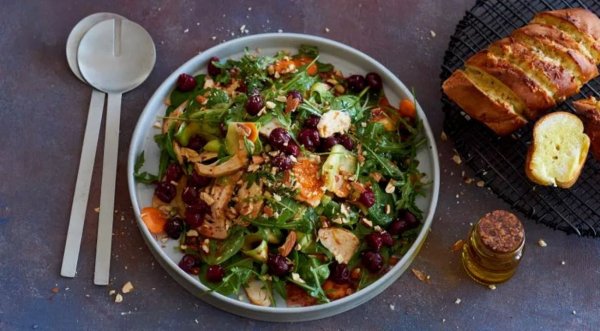 Название: Салат с курицей-гриль, овощами и маринованной черешней