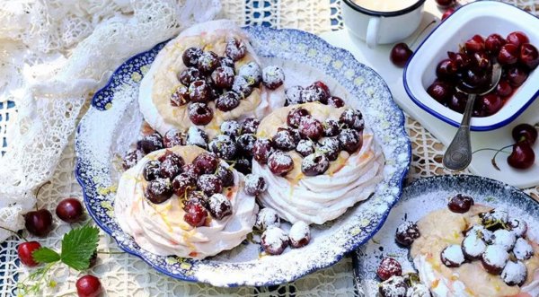 Описание: 🔴 Меренги Павлова с вишней 🔴Основа десерта Павлова – французские меренги. Подготовленная масса перекладывается в кондитерский мешок и отсаживается на противень, застеленный бумагой для выпечки. Предварительно на ней рисуется круг (круги) нужного диаметра. Это будущие «гнёзда» для торта. А ведь совсем не обязательно создавать большой торт, можно обойтись и пирожными.✅ Для 6 порций нужно:🔻 винный уксус - 1 ч. л. + для миски🔻 белки́ - 4 шт.🔻 соль на кончике ножа🔻 сахарная пудра - 200 г🔻 кукурузный крахмал - 1,5 ч. л.❇️ Для начинки:🔻 термостатная ряженка - 1 л🔻 вишня без косточек или черешня - 500 г🔻 сахарная пудра - 30 г🔻 лимонная цедра и сок 1 небольшого лимона✅ Готовка: ➡️ – Для начинки ряженку отвесьте. Для этого застелите сито вафельным полотенцем или 6–7 слоями марли, поставьте в холодильник, дайте стечь лишней сыворотке, 3–4 ч.➡️ – Положите вишню в сито, установленное в миске, посыпьте сахарной пудрой, полейте соком лимона, посыпьте половиной цедры, оставьте пропитаться на 30 мин.➡️ – Для меренги протрите миску и венчики уксусом, выложите белки, добавьте соль и взбейте белки миксером на средней скорости в пышную пену. Продолжайте взбивать, постепенно подсыпая пудру.➡️ – Добавьте крахмал и уксус, взбейте в стойкую пену, не падающую с венчиков.➡️ – Выложите из меренги «гнезда» диаметром 15 см на силиконовый коврик и поставьте в разогретую до 90 °С духовку на 2 ч. Полностью остудите меренги.➡️ – Выложите отвешенную ряженку на меренги. На нее выложите ягоды, посыпьте оставшейся лимонной цедрой и при желании сбрызните соком. Подавайте немедленно.
