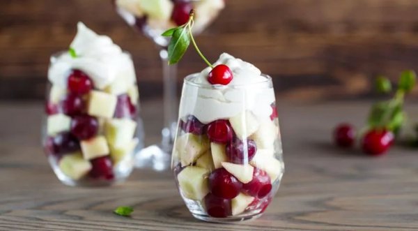 Описание: 🔴 Салат из вишни и яблок с соусом из йогурта 🔴Такой вишни, как у нас, нет нигде на свете. Ну, по крайней мере, мы не пробовали. То, что продается на Западе, – это в нашем понимании черешня, хотя вкусная, конечно. Но вот салатов (а также вареников и пирогов) с настоящей вишней им, бедным, вовек не попробовать. Чтобы этот десертный салат получился красивым, важно сохранить форму у вишни, осторожно выдавливая из нее косточку. Для этого можно воспользоваться машинкой для удаления косточек. Если у вас дома нет специальной машинки для удаления косточек из вишни и оливок, придется действовать бабушкиными методами. Возьмите шпильку для волос или очень толстую и прочную скрепку. Втыкайте шпильку закругленным концом в то место, откуда у вишни растет «хвостик». Делайте мелкое движение, как будто вы копаете огород лопатой (в роли лопаты – шпилька). Косточка легко вынется.✅ Для 4 порций нужно: 🔻 500 г вишни🔻 2 средних яблока🔻 3 ст. л. коричневого сахара❇️ Для соуса:🔻 150 мл сливок жирностью 35%🔻 1 стаканчик натурального йогурта🔻 2 ст. л. лимонного сока🔻 3 ч. л. ванильного сахара✅ Готовка: 30 мин➡️ – Вымойте вишню в проточной воде, обсушите. Удалите косточки.➡️ – Очистите яблоки от кожуры и семечек. Порежьте мякоть кубиками. Сразу же перемешайте вишню и яблоки с коричневым сахаром. Старайтесь не давить нежные ягоды, чтобы из них не вытекло сразу слишком много сока.➡️ – Взбейте миксером сливки с ванильным сахаром в пышную пену. Продолжая взбивать, влейте йогурт и лимонный сок. Взбейте еще раз.➡️ – Выложите салат в стеклянные стаканы или десертные вазочки и полейте соусом.