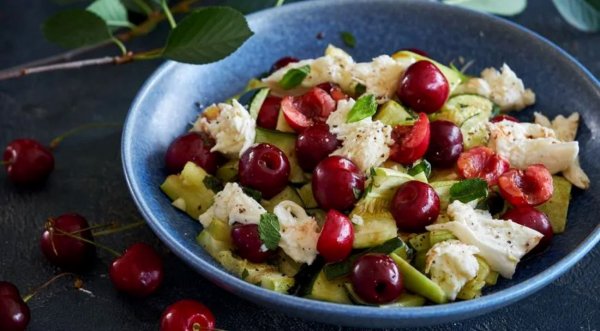 Описание: 🟠Салат из черешни и кабачков с сыром🟠Легкий летний салат с сезонными ягодами и овощами и молодым сыром.✅ Для 4 порций нужно: ➦ 400 г черешни (лучше смеси красной и желтой)➦ 2 маленьких кабачка➦ 2 маленьких цукини➦ 300 г молодого домашнего сыра➦ 4 зубчика чеснока➦ 1 небольшой пучок мяты➦ 4 ст. л. оливкового масла➦ 1,5 ст. л. бальзамического уксуса➦ 2 щепотки коричневого сахара➦ соль, свежемолотый черный перец – по вкусу✅ Готовка: 20 мин✔️– Удалите из черешни косточки, положите ягоды в миску, приправьте бальзамическим уксусом и сахаром. Дайте помариноваться, пока готовите салат.✔️– Кабачки нарежьте вдоль пластами толщиной примерно 1 см. Посолите, разложите на противне, сбрызните оливковым маслом, поставьте в разогретую до 180 °С духовку на 5 мин. Затем переложите в миску, еще полейте маслом и немного остудите. Нарежьте поперек удобными для еды кусочками.✔️– Раздавите, очистите и как можно мельче порубите чеснок. У мяты удалите стебли, листочки мелко порубите. Посыпьте кабачки мятой с чесноком и перемешайте. Поперчите.✔️– Раскрошите сыр руками. Разложите по тарелкам кабачки, на них выложите черешню, посыпьте сыром и подавайте.