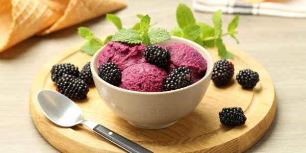 Описание: 🟥Ежевичный сорбет🟥Кисло-сладкий охлаждающий десерт, в котором хорошо ощущается вкус и текстура ежевики. Понадобится блендер.✅ Для 4 порций нужно: ➽ Сахар – 180 г➽ Вода – 150 мл➽ Ежевика – 500 г➽ Кокосовое молоко – 120 мл✅ Готовка: 5 ч.➤ – В сотейник с толстым дном всыпьте сахар и добавьте воду. Доведите до кипения и варите 3 минуты. Снимите сироп с огня и остудите.➤ – Ежевику переберите и измельчите в блендере. Если не любите косточки, удалить их через сито.➤ – Добавьте к пюре ежевики кокосовое молоко и остывший сироп. Хорошо перемешайте.➤ – Выложите массу в контейнер и уберите в морозилку на 1,5 часа.➤ – Затем достаньте сорбет из морозилки и взбейте его венчиком. Уберите обратно на 4 часа. Каждый час доставайте сорбет и снова взбивайте.