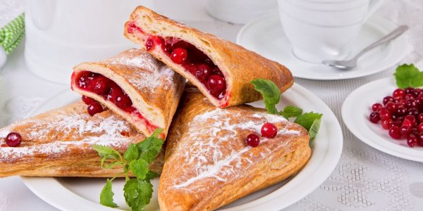 Описание: Слойки пекутся из готового бездрожжевого теста. Добавьте в начинку крахмал, чтобы впитался лишний сок от ягод. И тесто лучше разморозить заранее.👉 Для 4 порций нужно: ⏩ Красная смородина – 250 г⏩ Тесто слоёное бездрожжевое – 1 пласт⏩ Мука пшеничная – 1 ст. ложка⏩ Кукурузный крахмал – 1 ст. ложка⏩ Сахар – 150 г⏩ Яйцо – 1 штука⏩ Соль – 1 щепотка⏩ Сахарная пудра – 50 г👉 Готовка: 40 мин.🟠 – Разогрейте духовку до 190 ℃.🟠 – Смородину переберите, удалите лишние веточки, промойте, просушите.🟠 – Пласт теста раскатайте на припылённой мукой поверхности. Разрежьте на четыре квадрата.🟠 – Возьмите яйцо и отделите желток от белка.🟠 – На один угол теста, отступая от края по 1 см, выложите смородину и посыпьте её крахмалом и сахаром.🟠 – Смажьте края теста яичным белком, накройте начинку свободны углом теста так, чтобы получились треугольники. Прижмите края руками, а потом скрепите при помощи вилки.🟠 – В желток добавьте соль и перемешайте. Смажьте поверхность заготовок.🟠 – Выпекайте 20 минут. Дайте немного остыть и посыпьте сахарной пудрой.