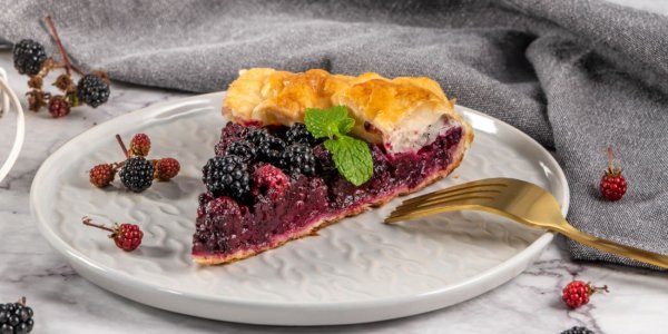 Описание: Пирог из готового теста и ягодной начинки готовится быстро и просто.👉 Для 6 порций нужно: ⏩ Лимон – 1 штука⏩ Ежевика – 400 г⏩ Сахар – 50 г⏩ Кукурузный крахмал – 1½ ст. ложки⏩ Слоёное тесто – 250 г⏩ Яичный желток – 1 штука⏩ Молоко или сливки – 1 ст. ложка👉 Готовка: 1 ч.🟠 – Мелкой тёркой снимите цедру с лимона, достаточно чайной ложки. Из мякоти цитруса выжмите полторы столовые ложки сока.🟠 – Ягоды смешайте с сахаром, соком, цедрой и крахмалом.🟠 – Тесто слегка раскатайте и вырежьте из него круг диаметром примерно 25 см или немного больше. Переложите на застеленный пергаментом противень. 🟠 – В центр выложите ягоды, отступая от краёв примерно по 4 см. Края подогните по направлению к центру, собирая их в складки.🟠 – Смажьте тесто желтком, смешанным с молоком.🟠 – Отправьте пирог в разогретую до 180 °С духовку примерно на 35–45 минут.