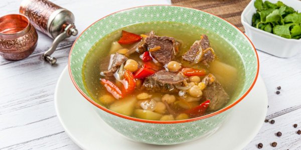 Описание: Такая шурпа готовится на баранине: важно купить свежий кусок бедренной части на кости. Если есть казан, то лучше готовить в нём. Но можно и в кастрюле.👉 Для 6 порций нужно: ⏩ Нут – 150 г⏩ Бедренная часть баранины на кости – 600 г⏩ Лук репчатый – 1 штука⏩ Курдючное сало – 25 г⏩ Семена кориандра – 4 г⏩ Семена зиры – 4 г⏩ Перец горошком – 4 г⏩ Картофель – 2 штуки⏩ Морковь – 1 штука⏩ Болгарский перец – 1 штука⏩ Лавровые листья – 2 штуки⏩ Соль – по вкусу⏩ Кинза – для подачи👉 Готовка: 1 д.🟥 – Нут заранее замочите холодной водой и оставьте на сутки. Слейте воду и промойте бобовые.🟥 – Баранину нарежьте средними кусками и вместе с костью положите в кастрюлю, залейте водой и доведите до кипения. Снимите пену.🟥 – Очистите луковицу и положите к мясу, варите полчаса, периодически снимая пену.🟥 – Мелко нарежьте курдючный жир и вместе с кориандром, зирой и перцем положите в бульон. Варите 1 час.🟥 – Очистите картофель и морковь. Картофель и болгарский перец нарежьте, а морковь натрите на тёрке. Удалите луковицу из бульона, а остальные овощи и нут положите вариться на 30 минут.🟥 – Достаньте баранину и нарежьте. Отправьте обратно в суп вместе с лаврушкой. Посолите по вкусу.🟥 – Варите шурпу ещё 10 минут. Подавайте со свежей кинзой.
