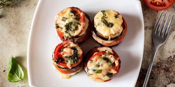 Описание: 🔶🔶🔶 Башенки из баклажанов и помидоровОчень простой способ красиво запечь овощи в духовке.✅ Для 6 порций нужно: 🔺 Баклажаны – 2 штуки🔺 Помидоры – 5 штук🔺 Сыр – 150 г🔺 Базилик – несколько веточек🔺 Чеснок – 1 зубчик🔺 Соль – по вкусу✅ Готовка: 45 мин.🟤 – Нарежьте баклажаны и помидоры кружочками.☝️ – Выбирайте овощи так, чтобы кружочки были одного диаметра.🟤 – Натрите сыр. Порубите базилик. Натрите чесноком баклажаны.🟤 – Застелите противень пергаментом. Разложите половину баклажанов, посыпьте сыром, добавьте кружок помидора и сыр. Повторите слои. Сверху посыпьте сыром и базиликом. Присаливайте овощи.🟤 – Отправьте в духовку, разогретую до 180 ℃, примерно на полчаса.