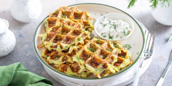 Название: Кабачковые вафли с зеленью, сыром и соусом
