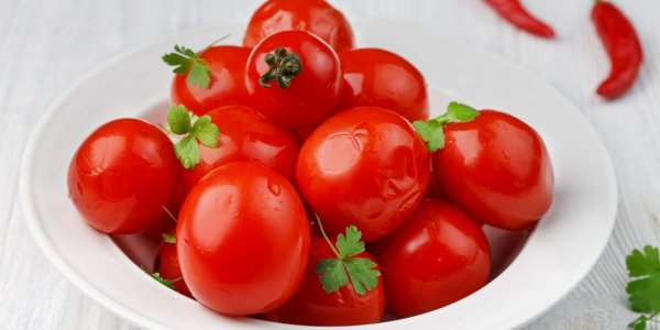 Описание: 🥣🥣🥣 Малосольные помидоры горячим способомПетрушка, острый перец и чеснок дарят помидорам яркий аромат и пикантный вкус.✅ ИНГРЕДИЕНТЫ: 📌 Вода – 1 л📌 Соль – 1 ст. ложка📌 Чеснок – 5 зубчиков📌 Помидоры – 1 200 г📌 Острые перцы – 2 штуки📌 Петрушка – 50 г✅ ГОТОВКА: 2 дня🟦 – Вскипятите воду с солью. Крупно нарежьте чеснок.🟦 – Выложите в кастрюлю или другую ёмкость помидоры, острые перцы, зелень и чеснок.🟦 – Залейте горячим рассолом. Накройте крышкой и оставьте на сутки при комнатной температуре.🟦 – Затем уберите в холодильник ещё на сутки.