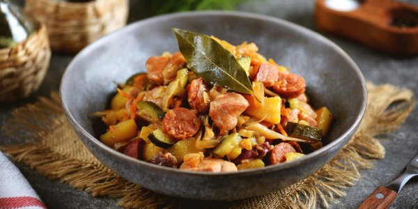 Название: Тушёные овощи с колбасками чоризо