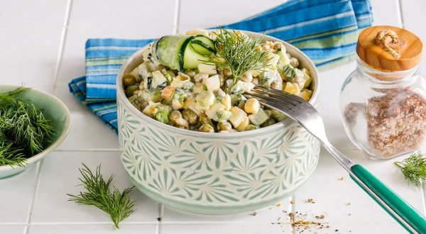 Название: Салат со свежим огурцом, яйцом и зеленым горошком
