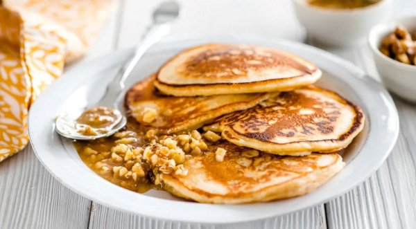 Описание: 🟠 Американские панкейки - с орехово-карамельным соусомВот такими пышными блинчиками-панкейками любят завтракать в Америке. Готовятся они очень быстро, тем более, что смешать сухие ингредиенты можно заранее. Подавайте их горячими, остывшими они не так вкусны.✅ ИНГРЕДИЕНТЫ:🔹🔹🔹 Для панкейков:📌 250 г муки📌 2 ч. л. разрыхлителя📌 3 ст. л. сахара📌 1/4 ч. л. соли📌 2 яйца📌 350 мл сливок жирностью 10%📌 4 ст. л. растительного масла + немного для жарки🔹🔹🔹 Для соуса:📌 225 г сахара📌 65 мл питьевой воды📌 150 – 200 мл сливок жирностью 33%📌 70 г сливочного масла📌 40-50 г грецких орехов, лучше без кожицы✅ ГОТОВКА: 40 мин. (+ 30 мин. доп. времени)🥣 – Приготовьте карамельный соус. Насыпьте в сотейник сахар, влейте воду и поставьте на средний огонь. Дождитесь, когда сахар начнет таять, увеличьте огонь до сильного. Не мешайте смесь, иначе начнется кристаллизация! Держите сотейник на огне, пока масса не станет янтарно-золотистого цвета. Снимите сотейник с огня и влейте сливки до желаемой густоты соуса. Аккуратно, смесь будет брызгаться! Перемешайте деревянной ложкой и добавьте сливочное масло. Размешайте и остудите.🥣 – Обжарьте орехи на сухой горячей сковороде, 3 мин. Пересыпьте на рабочую поверхность. Мелко порубите орехи и смешайте с карамельным соусом.🥣 – Просейте в большую миску муку и разрыхлитель, всыпьте сахар и соль. Смешайте яйца, сливки и растительное масло в другой миске. Добавьте мучную смесь и быстро размешайте, не надо вымешивать тщательно. Тесто должно быть по консистенции как густая сметана.🥣 – Разогрейте сковороду с толстым дном, смажьте маслом. Наливайте тесто небольшими порциями, чтобы получались блинчики размером 10–12 см в диаметре. Пеките с двух сторон. Складывайте стопкой и держите в духовке, разогретой до 90 °С.🥣 – Разложите панкейки по 3–4 штуки на тарелку и полейте карамельно-ореховым соусом. Подавайте горячими.