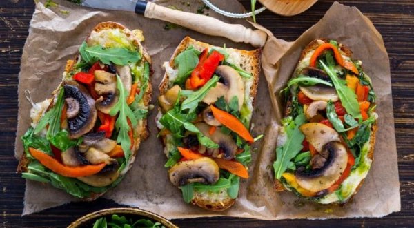 Описание: 🟦 Горячие бутерброды с грибами, перцем и пестоЭти бутерброды могут быть воскресным завтраком или легким ужином. Только обязательно используйте для их приготовления цельнозерновой хлеб. И помните, что одна порция – это один бутерброд, не больше!✅ ИНГРЕДИЕНТЫ:📌 8 кусков цельнозернового хлеба📌 250 г белых грибов или крупных шампиньонов📌 1 сладкий красный перец📌 80 г моцареллы📌 2 горсти руколы📌 1 ч. л. оливкового масла🔹🔹🔹 Для песто:📌 4 веточки базилика📌 половина зубчика чеснока📌 1 ст. л. тертого пармезана📌 2 ст. л. оливкового масла📌 соль, свежемолотый черный перец✅ ГОТОВКА: 40 мин.🥣 – Сладкий перец запеките в духовке или над газовой конфоркой до темных подпалин. Переложите в миску и накройте крышкой, оставьте на 10 мин. Очистите от кожицы и семян и нарежьте полосками.🥣 – Приготовьте соус песто. Измельчите листья базилика с чесноком, посолите и влейте оливковое масло. Добавьте пармезан, перемешайте и влейте 2–3 ст. л. теплой воды, чтобы получился соус средней густоты.🥣 – Нарежьте грибы ломтиками. Разогрейте в антипригарной сковороде оливковое масло и обжарьте грибы на среднем огне, 10 мин., в конце посолите и поперчите.🥣 – Разогрейте духовку до 175 °С. Поставьте хлеб в духовку и запекайте 10 мин., до золотистого цвета. Натрите моцареллу на терке и выложите на хлеб, верните в духовку, пока сыр не расплавится.🥣 – Переложите хлеб на блюдо и смажьте соусом песто. Выложите печеный перец, руколу и обжаренные грибы. Подавайте бутерброды горячими.👉 КСТАТИ – Грибы – отличный продукт для тех, кто следит за фигурой. В них содержится почти столько же белка, как и в мясе, а жира практически нет. С их помощью легко устраивать себе дни без мяса, сохраняя баланс белков в организме.