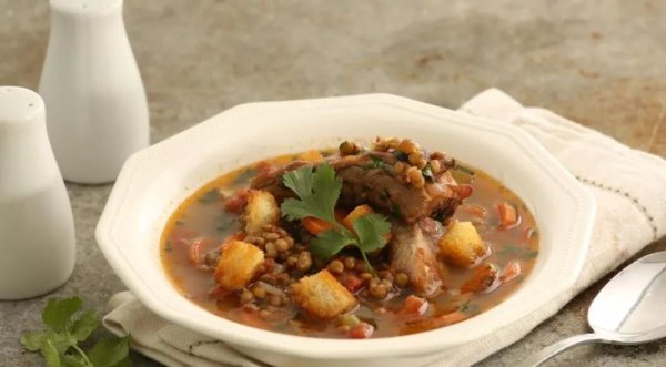 Описание: 🟥 Чечевичный суп с копченостямиПриготовьте чечевичный суп с копченостями, наваристый и согревающий, – он особенно хорош в качестве плотного обеда. Как и всякие бобовые, зеленая чечевица чрезвычайно удачно сочетается с копченостями. Так что можно смело варить этот невероятно ароматный и сытный суп. Кислота, представленная помидорами в собственном соку, немного замедлит приготовление чечевицы и не позволит ей развариться в пюре. Подавайте готовый суп с чесночными гренками и обязательно посыпьте любимой зеленью.✅ ИНГРЕДИЕНТЫ:📌 250 г мелкой зеленой чечевицы📌 4-6 небольших копченых свиных ребер📌 400 г помидоров, консервированных в с/с📌 2 средние морковки📌 2 стебля сельдерея📌 1 средняя луковица📌 2–4 зубчика чеснока📌 5 веточек кинзы📌 1 ч. л. кориандра📌 4 ломтика белого хлеба📌 соль📌 оливковое масло «экстра вирджин»📌 свежемолотый черный перец✅ ГОТОВКА: 1 ч.🥣 – Очистите лук, морковь и чеснок. Лук нарежьте маленькими кубиками, морковь тонкими кружочками, сельдерей тонкими ломтиками. Мелко порубите зубчики чеснока. Помидоры очистите от кожицы и порежьте на кусочки.🥣 – В широкой кастрюле разогрейте 1 ст. л. оливкового масла. Добавьте лук, половину чеснока и сельдерей и жарьте на среднем огне до мягкости 5 мин. Добавьте морковь и жарьте еще 3 мин.🥣 – Слегка раздавите кориандр в ступке и добавьте в кастрюлю. Жарьте 1 мин. Затем добавьте помидоры вместе с соком. Готовьте еще 5 мин.🥣 – Положите чечевицу и ребра к овощам и залейте 1,3 л кипящей воды. Доведите до кипения и варите на медленном огне 40 мин., до мягкости чечевицы. Посолите и поперчите суп.🥣 – Приготовьте гренки. Срежьте корки с кусочков хлеба и нарежьте небольшими кубиками. Оставшийся чеснок разотрите с солью и 3 ст. л. оливкового масла, перемешайте полученную пасту с кусочками хлеба. Положите на противень, застеленный бумагой для выпечки, и запеките в духовке, разогретой до 180°С до золотистой корочки.🥣 – Перед подачей нарежьте кинзу и добавьте в суп. Достаньте из кастрюли ребрышки. Вы можете разрезать их по одному и положить в тарелки вместе с косточкой или срезать мясо и добавить в суп. Разлейте суп и подавайте с гренками.👉 НА ЗАМЕТКУ – Если в рецепте супа с копченостями вы решили заменить зеленую чечевицу на красную, то закладывайте ее в кастрюлю через 20 минут после того, как положили ребра. Сократите время варки крупы вдвое.👉 КСТАТИ – Чечевица содержит огромный набор витаминов и микроэлементов. Ее пользу трудно переоценить: эта зернобобовая культура является источником белка, а ее регулярное употребление в пищу улучшает работу желудочно-кишечного тракта и помогает снижать уровень сахара в крови.