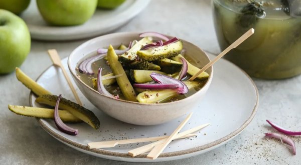 Описание: 🟣 Огурцы, маринованные в собственном сокуОгурцы, маринованные в собственном соку — вариация на тему «как спасти перезревшие огурцы». Все просто: вместо воды маринад делают на смеси соков — огуречного и яблочного. Это придает заготовке нежный вкус с легкой пикантной кислинкой. В остальном технология консервирования не отличается от классической.✅ ИНГРЕДИЕНТЫ:📌 Огурцы – 2 кг📌 Огуречный сок – 800 мл📌 Яблочный сок без сахара – 1 л📌 Соль – 1.5 ст.л.📌 Сахар-песок – 1.5 ст.л.✅ ГОТОВКА: 40 мин. (+ 10 мин. доп. времени)🥣 – Подготовьте три литровые стерилизованные банки для огурцов, маринованных в собственном соку. Огурцы тщательно вымойте, обдайте кипятком, а затем холодной водой. Уложите огурцы в банки.🥣 – Приготовьте маринад. Смешайте соки, соль и сахар и доведите до кипения. Залейте кипящий маринад в банки, выдержите 5 мин. Затем слейте маринад в кастрюлю и снова доведите до кипения. Повторите процедуру еще два раза.🥣 – Залейте маринад в банки и закатайте стерилизованными крышками. Переверните банки вверх дном, укутайте пледом и оставьте до полного остывания.👉 НА ЗАМЕТКУ – Чтобы приготовить сок для огурцов, маринованных в собственном соку, пропустите перезревшие огурцы через соковыжималку. Если же соковыжималки нет, проверните огурцы через мясорубку, а затем подвесьте в марлевом мешке, чтобы отделился сок.👉 КСТАТИ – Если переросших овощей нет, но вы все равно хотите сделать огурцы, маринованные в собственном соку, просто выберите самые крупные плоды наиболее сочных сортов. Какие сможете найти в магазине.