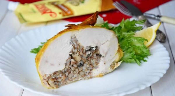 Название: Запеченная курочка, фаршированная гречкой и грибами