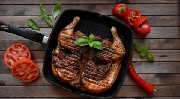 Описание: 🟤 Цыпленок табака по-советскиПолюбившееся многим, культовое блюдо советских ресторанов до сих пор остается одним из самых популярных блюд грузинской кухни.✅ ИНГРЕДИЕНТЫ:🧺 курица – 1,2 кг🧺 сливочное масло – 2 ст.л.🧺 растительное масло – 1 ст.л.🧺 паприка – 1 ч.л.🧺 молотый черный перец – 0,5 ч.л.🧺 хмели-сунели – 1 ч.л.🧺 соль – 0,5 ч.л.🧺 чеснок – 3 шт.✅ ГОТОВКА: 40 мин. (+ 10 мин. доп. времени)🥣 Небольшую курицу разрезать вдоль по грудке, раскрыть как книжку. Разложить курицу на рабочей поверхности плашмя, и обе половинки вывернуть кверху, надломив реберные и бедренные косточки. Удалить с курицы излишки кожи и жира. Для того, чтобы курица стала более плоской и мясо равномерно прожарилось, советую немного отбить ее в местах утолщения (грудка и бедра).🥣 Смазать всю поверхность курицы мягким сливочным маслом. Специи перемешать с солью и измельченным чесноком. Обильно натереть пряной смесью курицу со всех сторон.🥣 На гриль сковороде разогреть растительное масло. Выложить птицу. Придавить ее грузом. Обжаривать курицу на среднем огне с каждой стороны минут по 10, дважды перевернув. В общей сложности по 20 минут на каждую сторону.🔥СОВЕТ. Если у вас нет специальной сковороды с пресс-крышкой, можно воспользоваться подручными средствами, накрыв цыпленка плоской крышкой, меньшей по диаметру чем сковорода. А на крышку поставить любой груз, например наполненную водой кастрюлю.