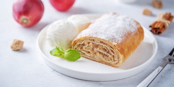 Описание: 🟠 Простой штрудель из лаваша с яблокамиЕсли не хотите возиться с тестом, приготовьте штрудель с яблоками из обычного лаваша. Это очень просто и достаточно быстро готовится в духовке.✅ ИНГРЕДИЕНТЫ:📍 Яблоки – 4 штуки📍 Сливочное масло – 50 г📍 Сахар – 2½ ст. ложки📍 Молотая корица – 1 ч. ложка📍 Тонкий лаваш – 1 штука📍 Яйцо – 1 штука📍 Молоко – 1 ст. ложка🔹🔹🔹 Можно добавить:📍 Изюм или грецкие орехи – по вкусу✅ ГОТОВКА: 50 мин.🥣 Очистите яблоки от кожуры и сердцевин. Нарежьте небольшими кусочками.🥣 Растопите в сковороде сливочное масло. Потушите яблоки с 2 ложками сахара около 10 минут. В конце введите корицу.🔥 Если фрукты кислые, можно положить больше сахара.🥣 Взбейте венчиком или вилкой яйцо, молоко и оставшийся сахар.🥣 Лист лаваша слегка смажьте яичной смесью.🥣 По желанию смешайте яблоки с размоченным изюмом или рублеными орехами.🥣 Распределите начинку по лавашу. Подверните широкие стороны и, начиная с узкой стороны, сверните рулет.🥣 Поместите в форму или на противень. Смажьте оставшейся яичной смесью.🥣 Отправьте в духовку, разогретую до 180 ℃, примерно на 25 минут.