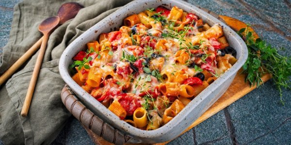 Описание: 🟤 Простая запеканка из макарон с баклажанами и помидорамиЭто блюдо идеально подойдёт для обеда или ужина и позволит разнообразить привычный рацион.✅ ИНГРЕДИЕНТЫ:📍 Макаронные изделия – 400 г📍 Баклажаны – 2 штуки📍 Помидоры – 3 штуки📍 Томатный соус – 250 г📍 Соль – по вкусу📍 Итальянские травы – по вкусу📍 Оливки без косточек – 100 г📍 Сыр – 150 г✅ ГОТОВКА: 50 мин.🥣 Макароны отварите до готовности по инструкции на упаковке, откиньте на дуршлаг.🥣 Пока макароны варятся, нарежьте баклажаны и помидоры кубиками.🥣 В объёмной миске смешайте макароны, овощи, томатный соус, соль и итальянские травы.🥣 Переложите всё в форму для запекания, добавьте нарезанные оливки и посыпьте натёртым сыром.🥣 Запекайте в заранее разогретой до 180 °С духовке 20–25 минут. По желанию украсьте зеленью при подаче.